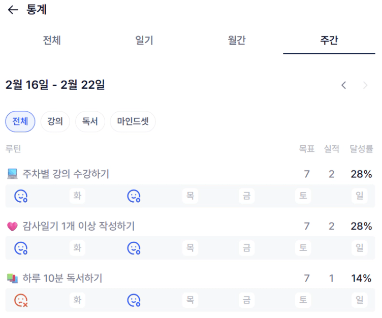 2️⃣ 이번 주 목실감을 작성하면서 느낀점과 더불어 한 주 스스로 어떻게 지냈는지 간단한 회고를 적어보아요 :)