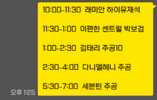오전 10:00 /12:00/ 오후 2:00 /4:00 / 6:00
