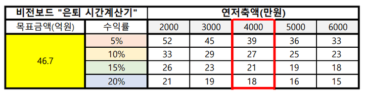 목표 금액 46.7억 (현재 나이 48세, 연저축액 4000만원)