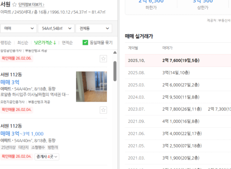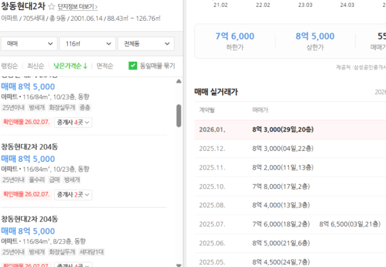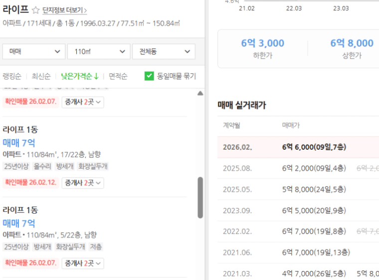현재 최저가는 실거래가 대비 5천만 원에서 8천만 원 이상 저렴한 수준입니다.