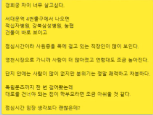 그리고 나중에 가보는 조원분도 다른 날짜의 분위기를 공유해주는 것도 도움이 될 겁니다.