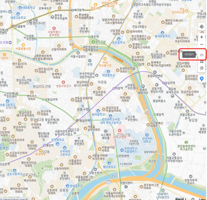 카카오맵 오른쪽 상단에 거리재기 버튼을 누르면 루트를 하나씩 그릴 수 있고요. 실수했다면 backspace(←키 or back키)를 누르면 취소할 수 있습니다.