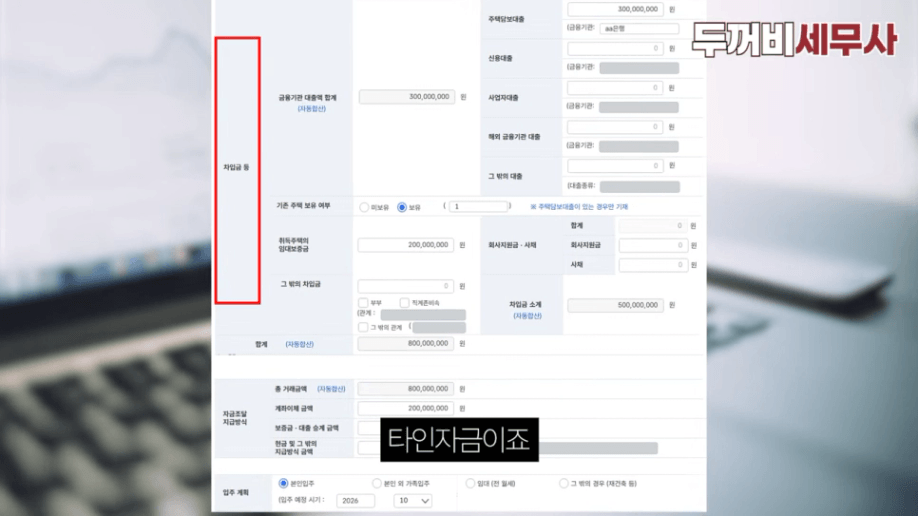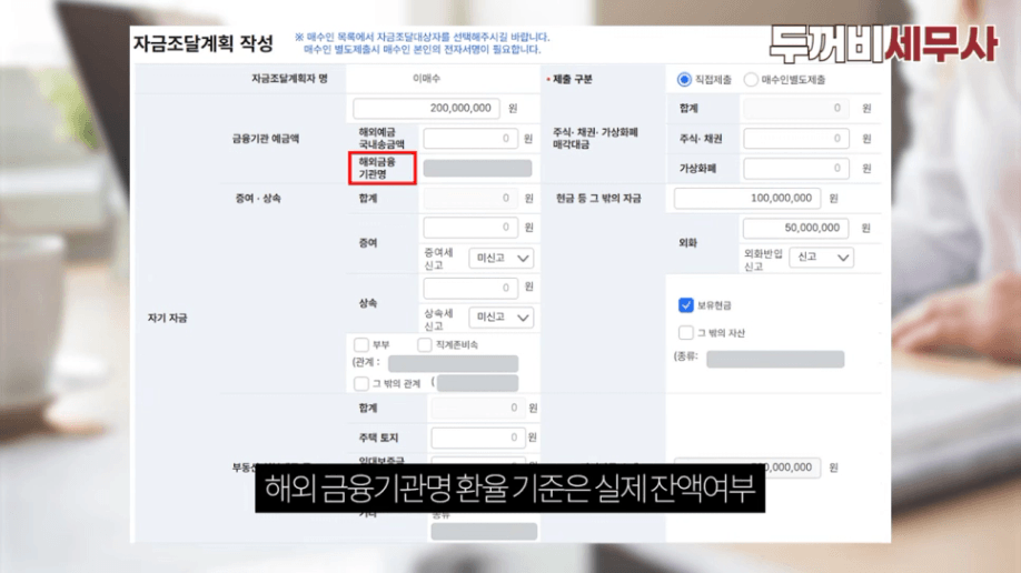 자금조달계획서 작성에 전부 다 남아 있는데,