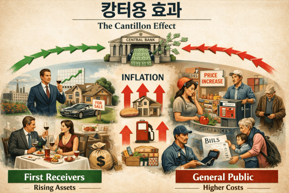 흔히 캉테용 효과라고도 부르는 이 용어는 새로운 돈의 생성지와 가까이 할수록 매력적인 가격에 투자를 할 수 있고, 멀리 있는 사람은 가격이 이미 오른 후 소비를 한다는 의미입니다.