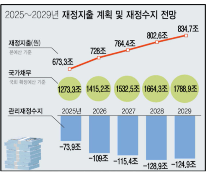 앞으로 이재명 정부의 재정지출 계획을 살펴볼까요? 2026년 기준 728조에서 2029년은 834.7조로 약 100조원 가까이 재정지출을 늘릴 계획이라고 합니다.