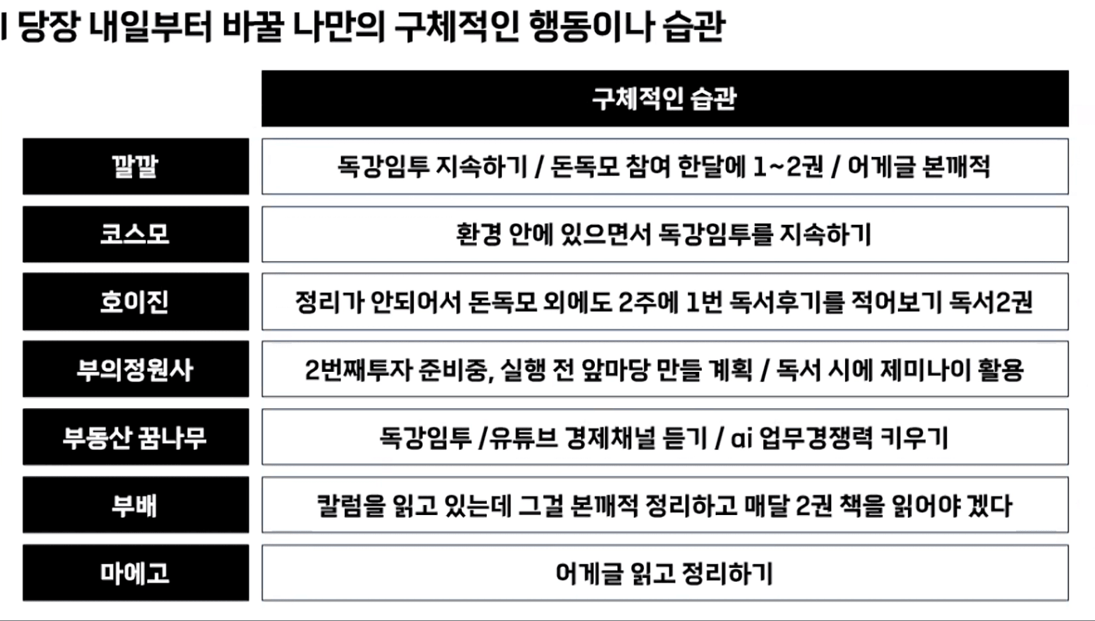 독서를 지속하여 마인드과 부의 그릇을 만들어 멘탈을 지탱해 나가자는 의견,