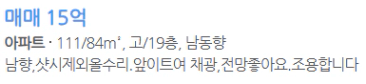 O동 전용84(혹은 33평) 고층 15억 매물 봤는데요.