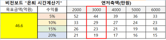 목표 금액 46.6억 (현재 나이 41세, 연저축액 3000만원)