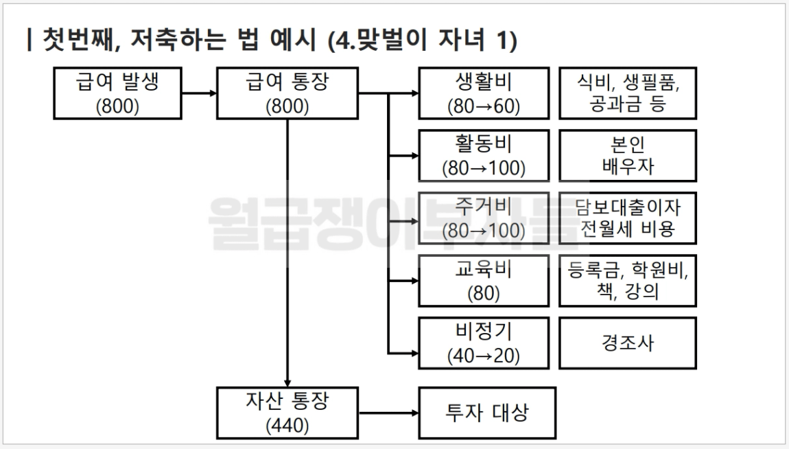 1. (너나위님 강의에서 배운 내용 중에) 맞벌이 자녀 1 세후 월급 800만원 기준으로 생활비 60~80만원으로 식비, 생필품, 공과금 등이 모두 포함인건지?