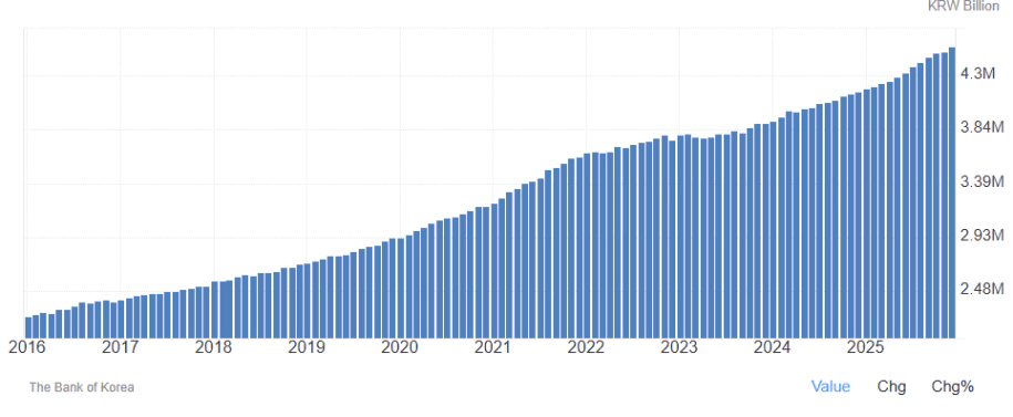 최근 우리나라의 M2(광의 통화량)이 4,538조 원으로