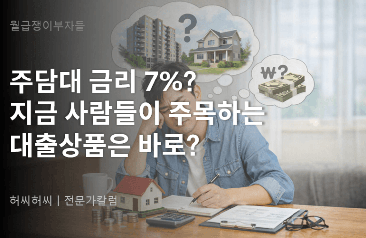 일부 은행권에서 주담대 금리 상단이 여전히 연 7%대를 육박하고 있어서 이자 부담이 커지고 있다고 합니다. 내 집을 살 때는 좋았지만, 달마다 내야 하는 고정 지출이 커지다 보니 마음이 어려워지는 건데요.