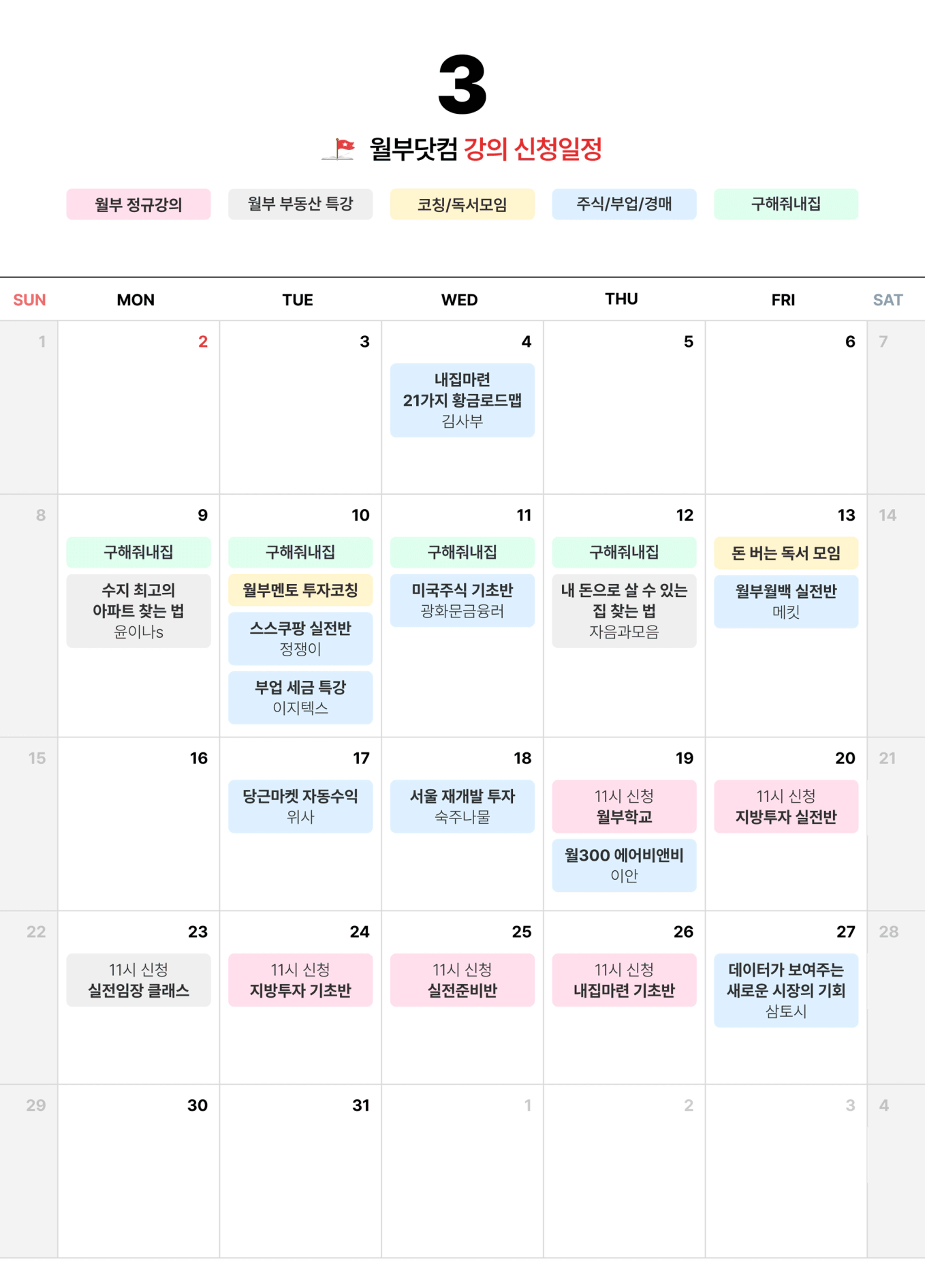 - 신청일정 : 3/4(수) 오전 11시, 월부닷컴 선착순
