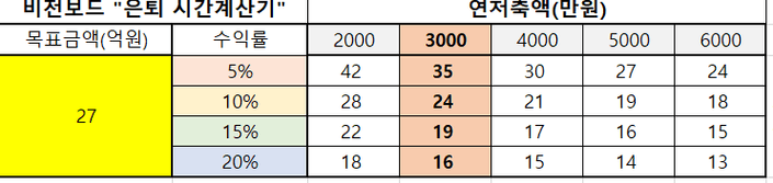 목표 금액 27억(현재 나이 31세, 연 저축액 3000만원)
