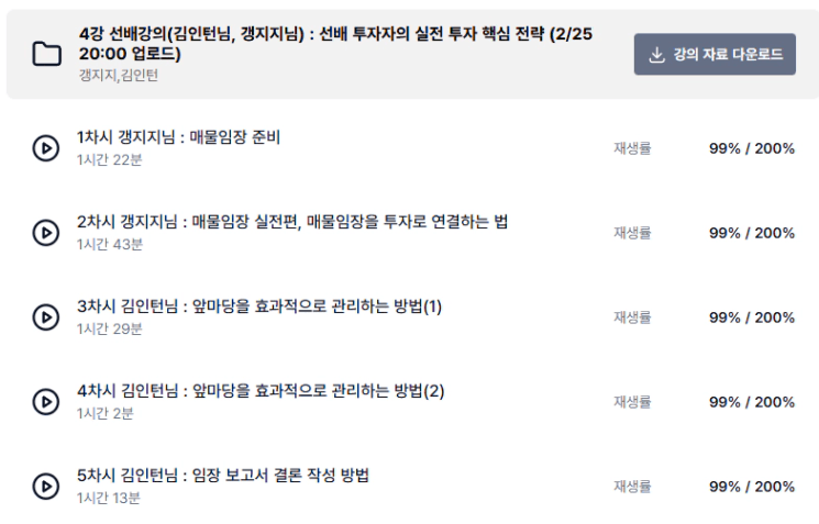 이번 4강은 갱지지 튜터님의 매물 임장 노하우와 김인턴 튜터님의 앞마당 관리 및 임보 결론 도출법을 배웠습니다.