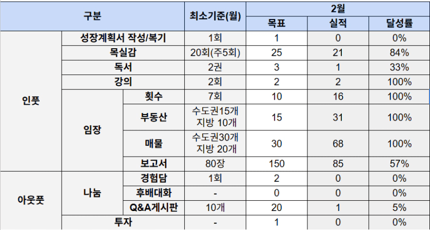 2월을 한 줄로 요약하면 매물털기 & 매물임장에 집중한 한달이었다고 볼 수 있습니다.