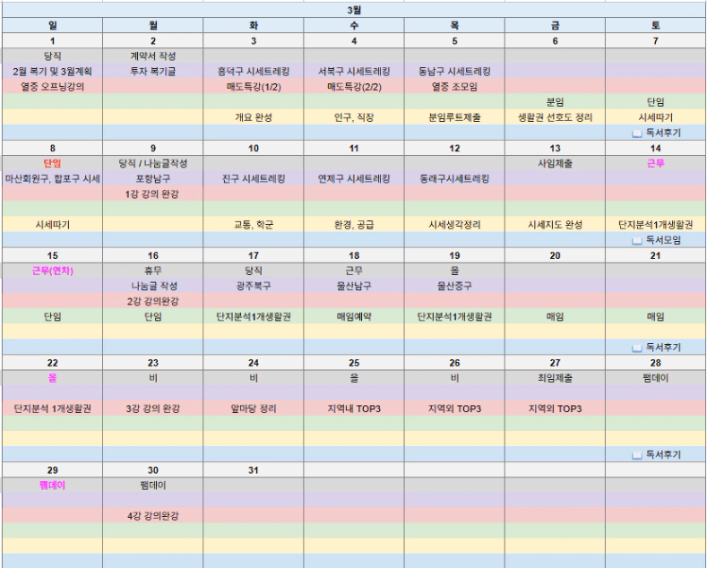 3월에는 지방임장을 계획하고 있는데 월부추천을 한 친구와 함께 다시 달려보면서 시간을 조금더 효율적으로 쓰면서 텐션을 높여보도록 하겠습니다
