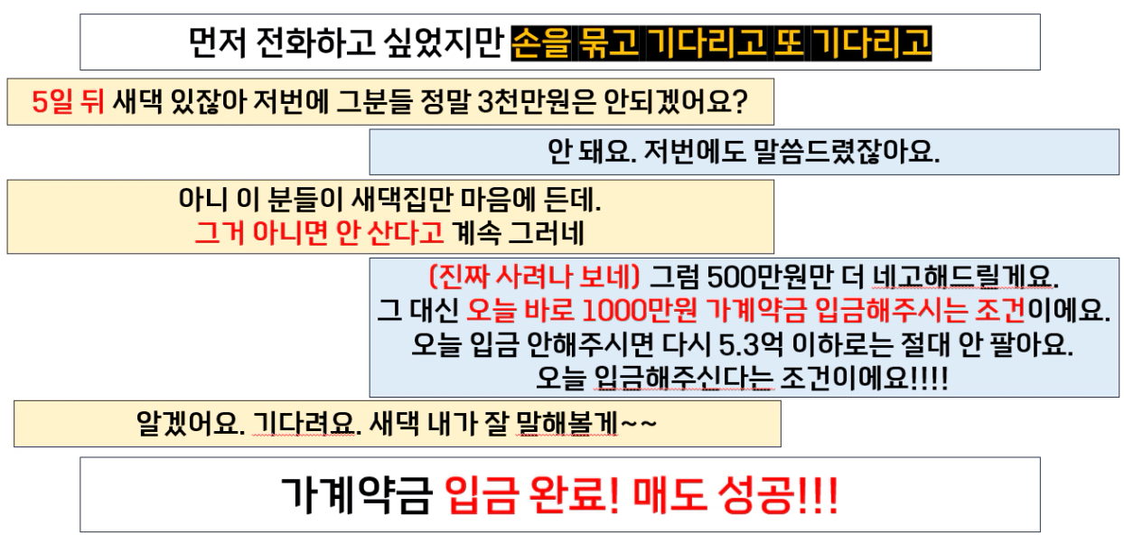 (1) 매수자가 있을 때 판다 (1천만원을 깎아주더라도)