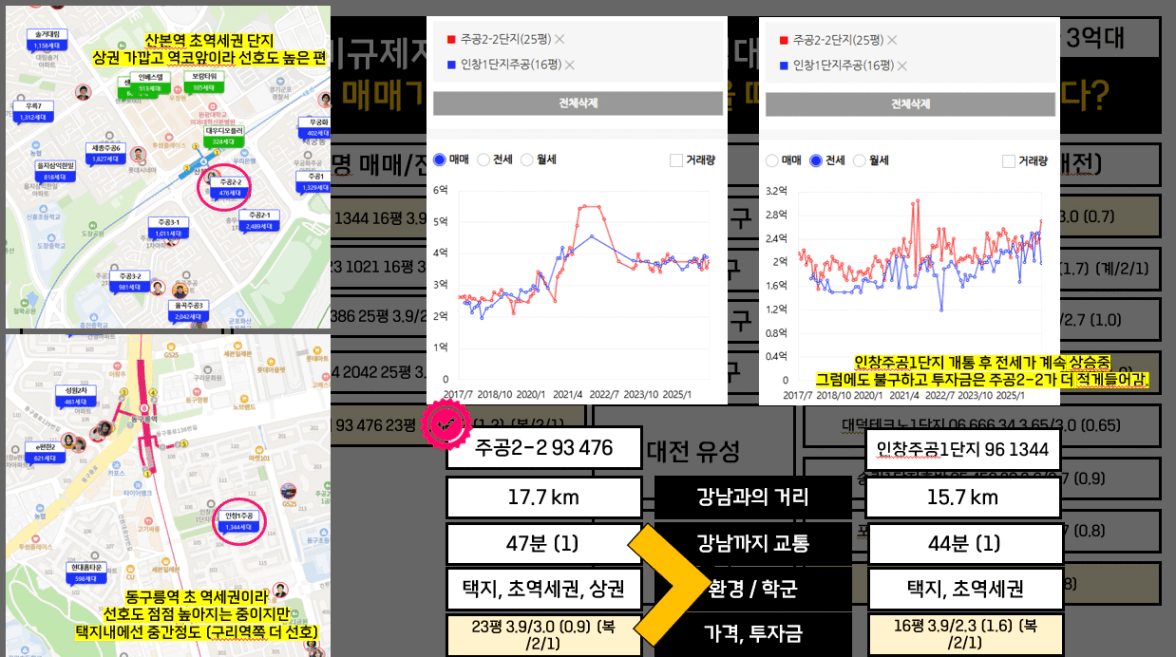 2) 투자금 or 매매가순으로 나열한 후 단지간 우선순위 확인하여 후순위 소거하기
