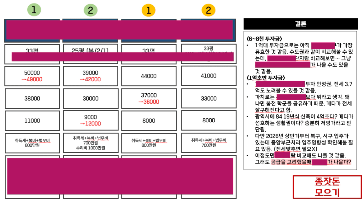 “내 투자금 시나리오에 맞는 지역"을 전수조사 (가격대, 시장분위기 확인) → 투자 후보 뽑기