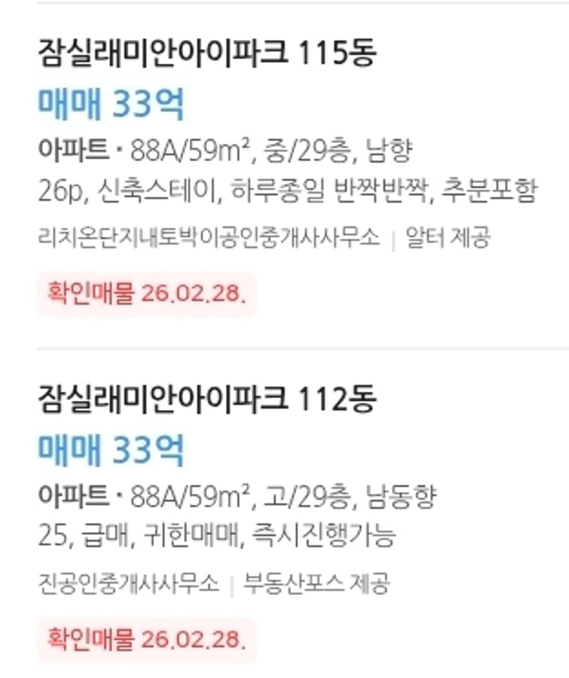 가격을 보고 나서 잠실에 입주한 신축이어도