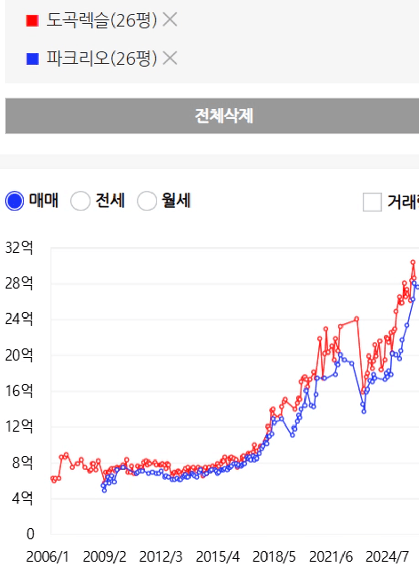 확실히 도곡렉슬이 파크리오 이상의 가치를