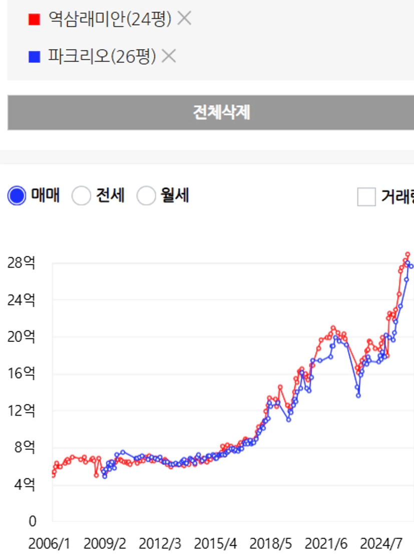 역삼래미안이 더 싸다는 생각이 듭니다.