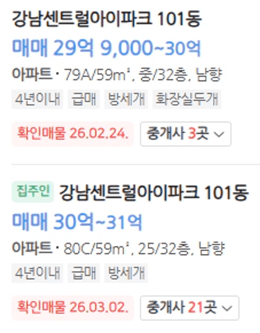 이렇게 호가가 나와있네요.