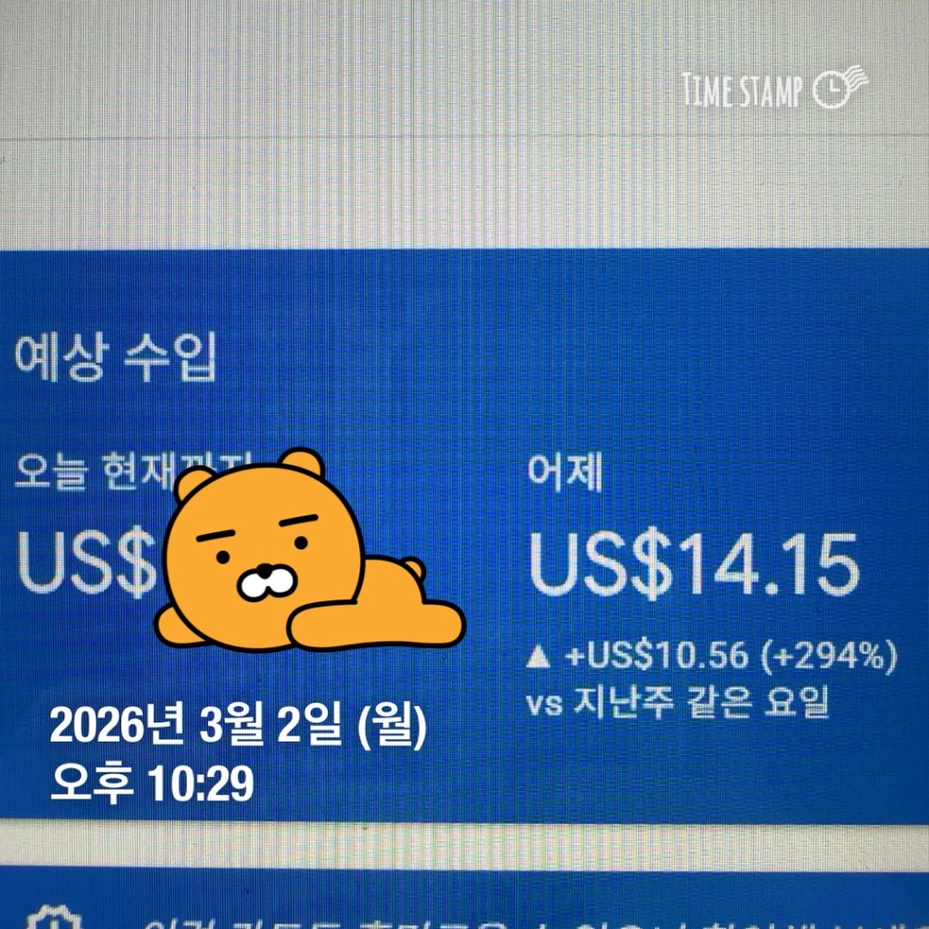 그 뭔가를 저도 해결하고 10달러 이상 벌고 싶네요 ㅎㅎ 14달러 축하들비니다!!