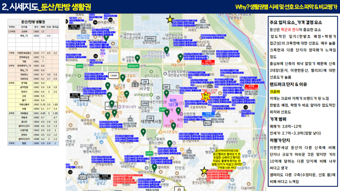 단지 선호도와 가격을 파악하고 투자 단지를 뽑는 것이 핵심이고,