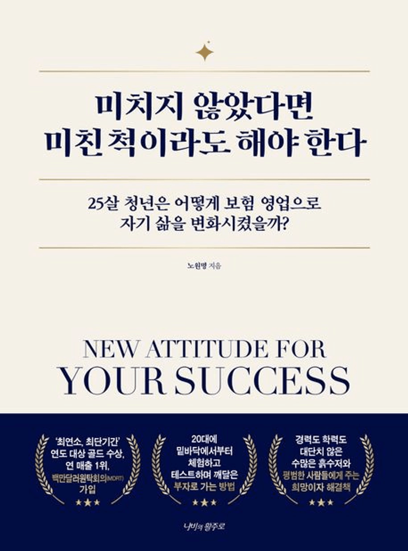 흙수저 성공 신화의 한 축을 이루는 20대 후반의 한국필수보험연구소의 대표 노원명이 젊음의 열정과 패기로 보험 시장의 새로운 패러다임 제시한다. 시급 1만 원에서 시작해 젊은 나이인 현재 월 5천만 원 이상을 벌고 있으며, 2023 엑셀금융서비스 ANNUAL AWARDS, 2022 엑셀금융서비스 ANNUAL AWARDS 등 화려한 수상 경력의 저자는, 더 나은 삶을 살기를 원하는 사람들에게 자신이 직접 체험하여 깨달은 부자가 되는 방법을 전한다.