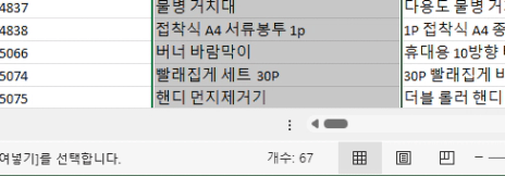 엑셀을 가공하여 웹유플랫에 올린 상품수는 67개 였는데요.