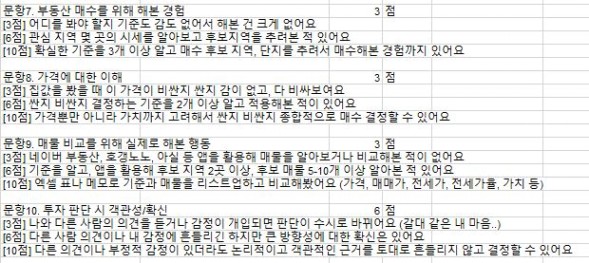 문항7. 부동산 매수를 위해 해본 경험 : 3점
