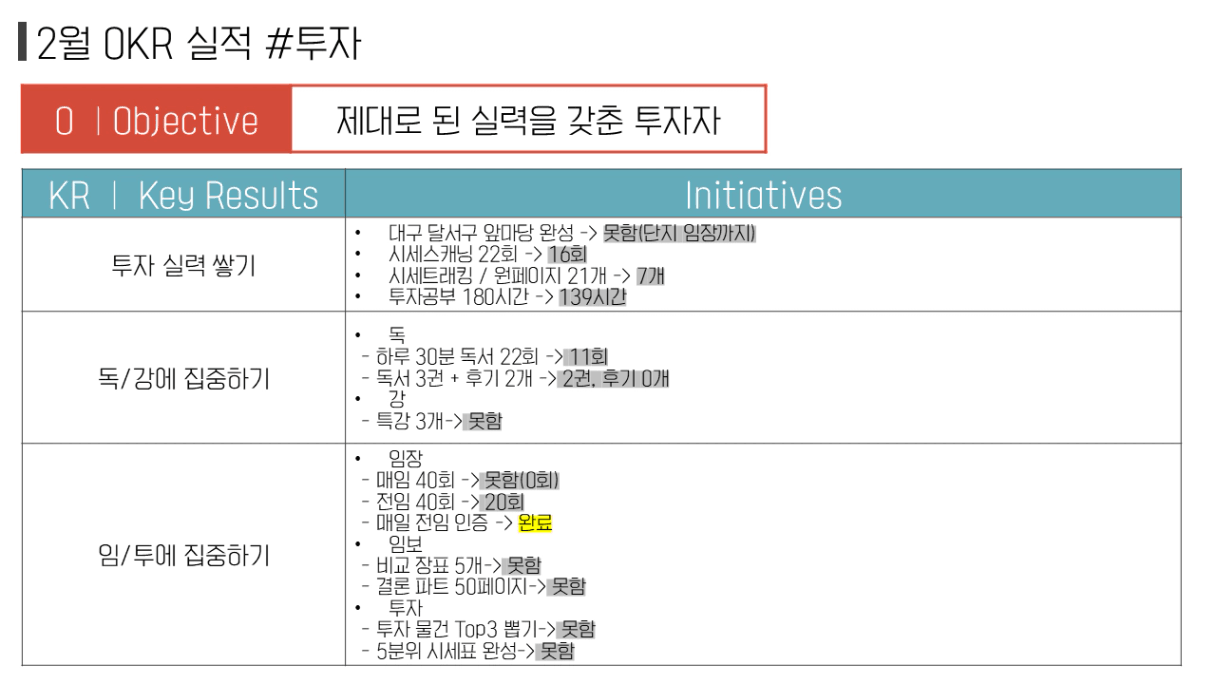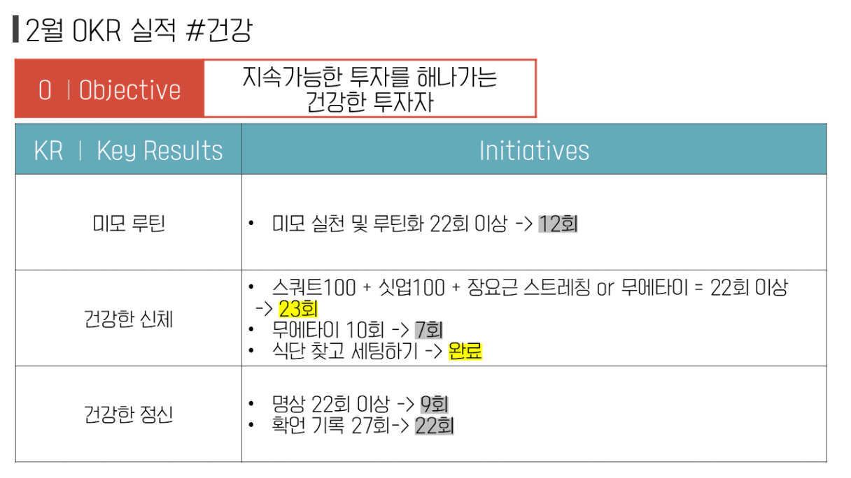 2월은 가족 여행, 명절 등 여러 일정과 돌발 이슈로 목표를 제대로 수행하지 못했다. 얼른 정신차리고 바쁘지만 해내는 3월을 만들어야겠다.
