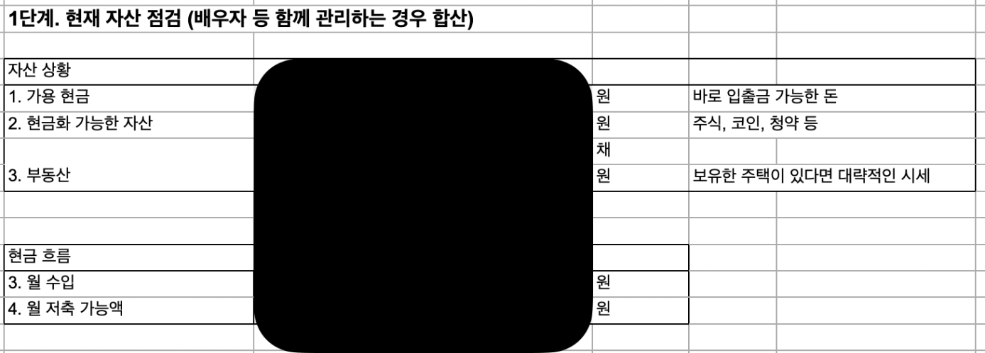 1단계. 현재 자산 점검 (배우자 등 함께 관리하는 경우 합산)