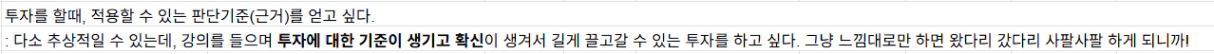 2. 이번 열반스쿨 기초반 수강하며 꼭 해결하고 싶은 것, 얻고 싶은 것