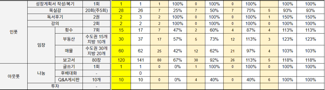개선할 점: 실적은 채웠지만 목표치가 낮으니 나눔 영역에서 성장했다고 느껴지진 않는다. 성장을 위해서는 할 수 없을 것 같은 만큼의 목표를 세우는 게 필요하다고 느꼈고, 다른 분들이 이미 다루었던 내용이라도 내 경험을 나만의 언어로 다시 정리해보면서 써보는 게 의미있다고 생각이 들어서 일단은 짧게라도 많이 써보는 걸 목표로 해보자.