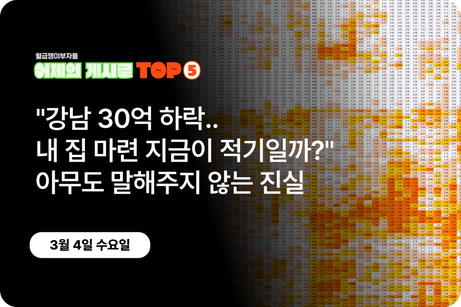 가장 반응이 좋았던 인기글만 담아 ‘어제의 게시글’ TOP5를 소개합니다.