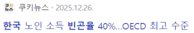 우리나라 66세 이상 상대적 빈곤율 | 약 40% | OECD 최고 수준 |