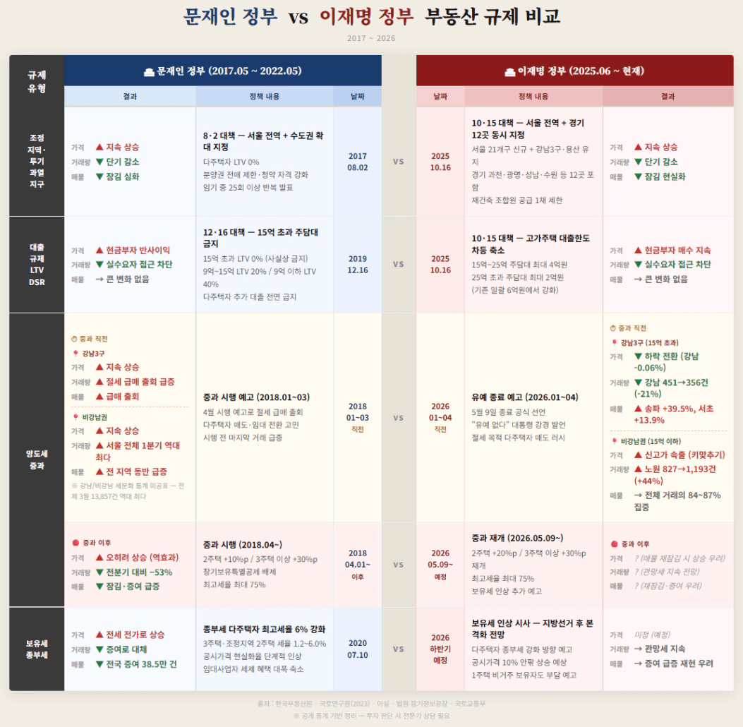 | 다주택자 세금 | 중과 없음 | 최대 +20%p 중과 |