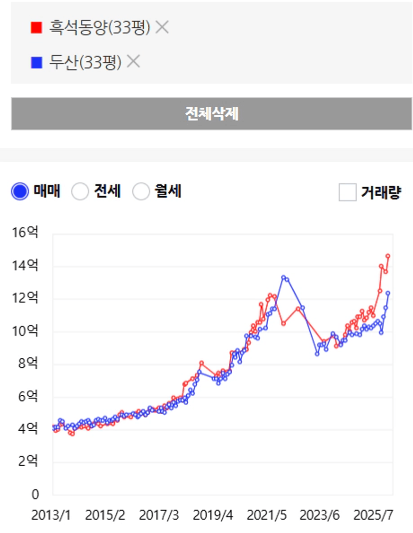 최근에는 흑석 동양의 가격이 더 빠르게 올라가는 것이 보이는데요,