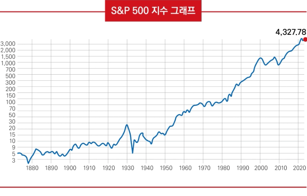 P163. 앞서 S&P 500 지수를 강남 부동산과 같은 자산이라고 언급했습니다. 미국 경제는 과거에도 그랬고 현재에도 미래에도 전 세계에 커다란 영향을 미칠 겁니다. 우리나라도 당연히 예외는 아닙니다. 그래프는 140여 년 동안 S&P 500 지수의 주가를 나타난 그래프입니다. 장기간 우상향했다는 사실은 개인 투자자들이 그토록 어려워하는 매수 타이밍이 상대적으로 덜 중요했다는 뜻입니다