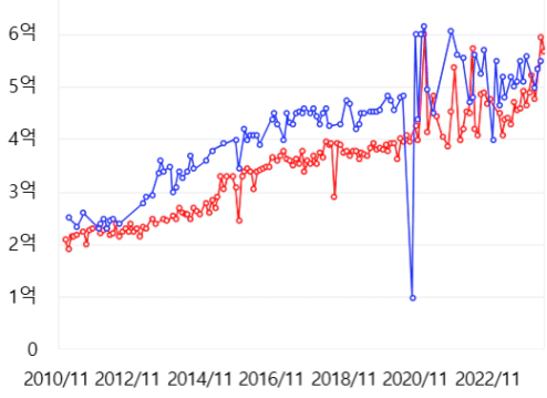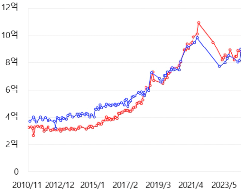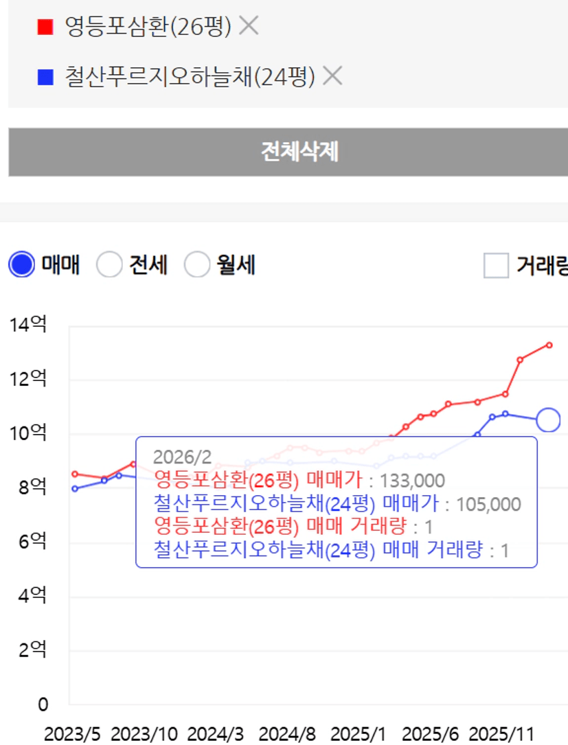 (파란색_철산푸르지오하늘채 / 빨간색_영등포삼환)