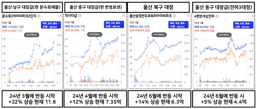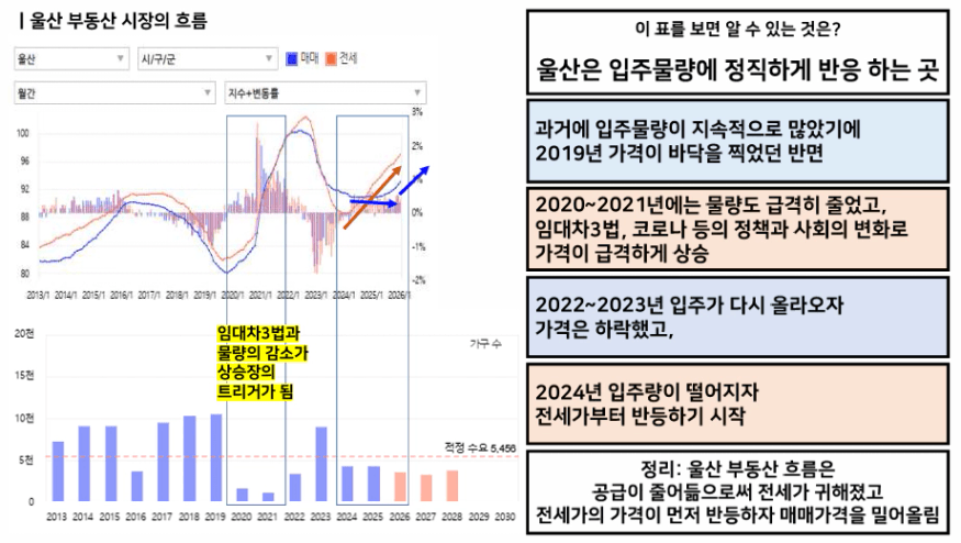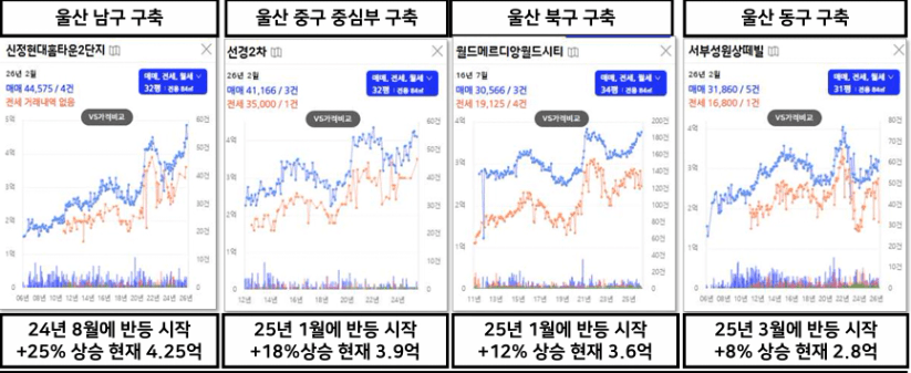 실제로 울산을 보면 전세가가 반등하자 매매가도 움직이기 시작했습니다.