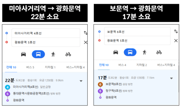 강남만큼은 아니지만, 광화문이 직장이라면 성북구 어디에서도 접근이 편하다는 장점이 있습니다. 지하철로 30분 내 직장까지 접근할 수 있다는 장점! 매력적이지 않으신가요?
