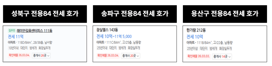 최근 성북구 선호 단지 전세 분위기