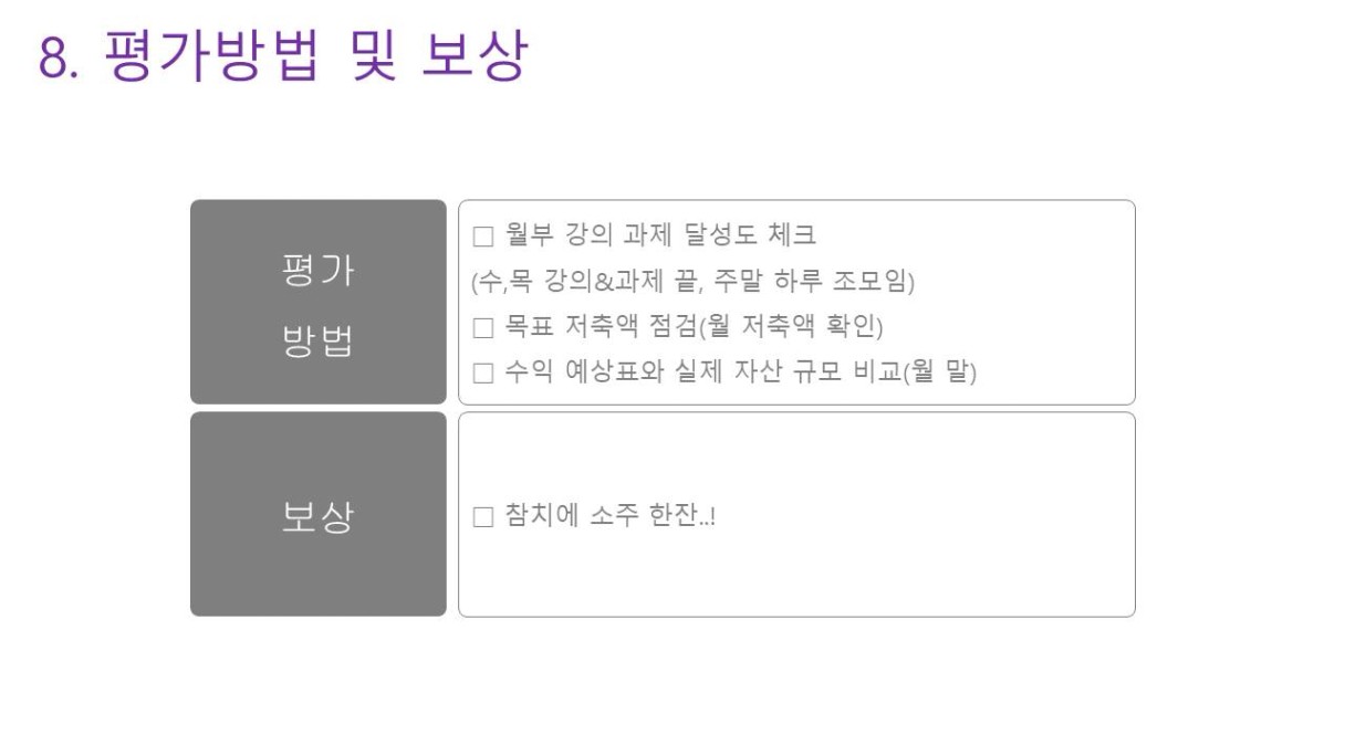 꾸준한 투자공부, 월부 열반스쿨 강의 수강, 앞마당 5곳, 독서 한달에 최소 2권 이었는데요.