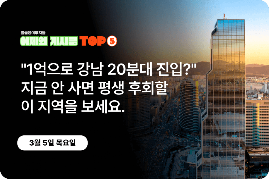 가장 반응이 좋았던 인기글만 담아 ‘어제의 게시글’ TOP5를 소개합니다.