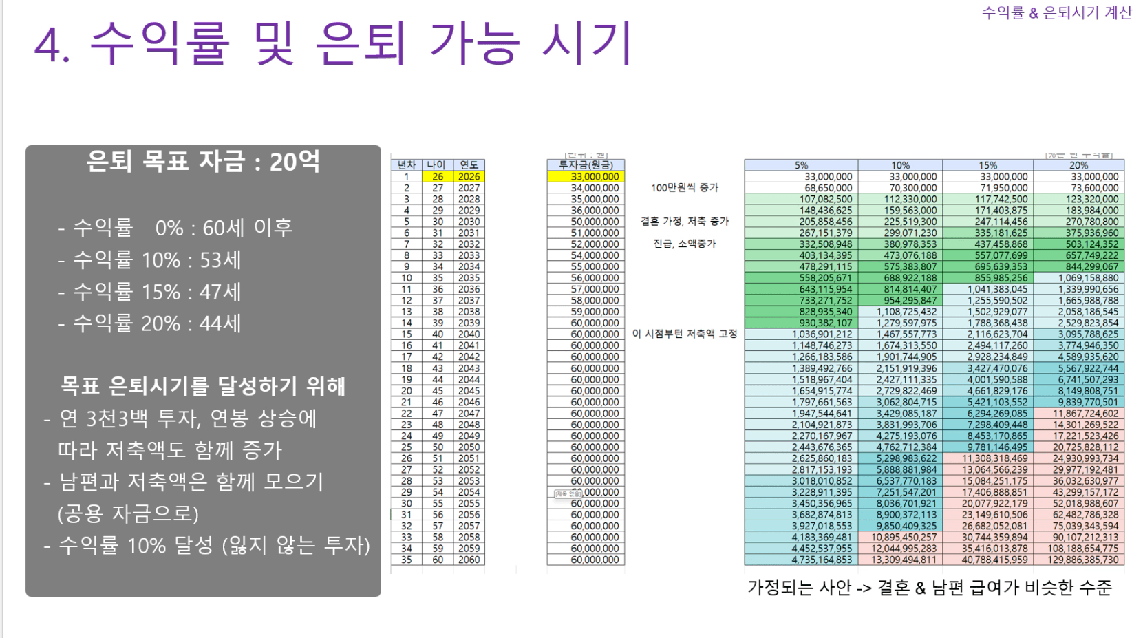 STEP4. 수익률에 따른 은퇴 가능 나이