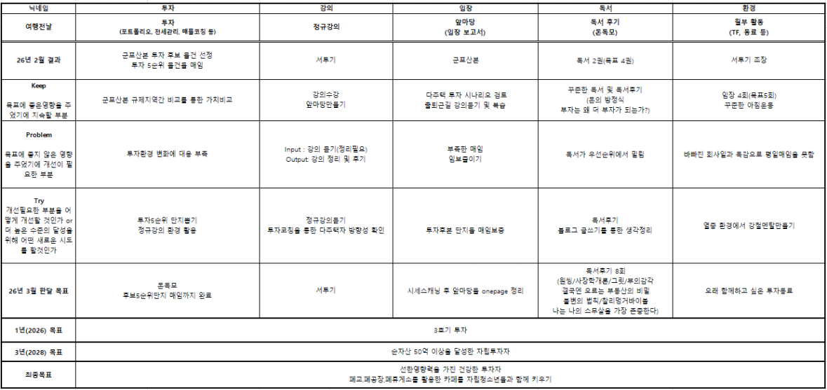 | 투자활동 | 한달 목표 | 실행목표 |