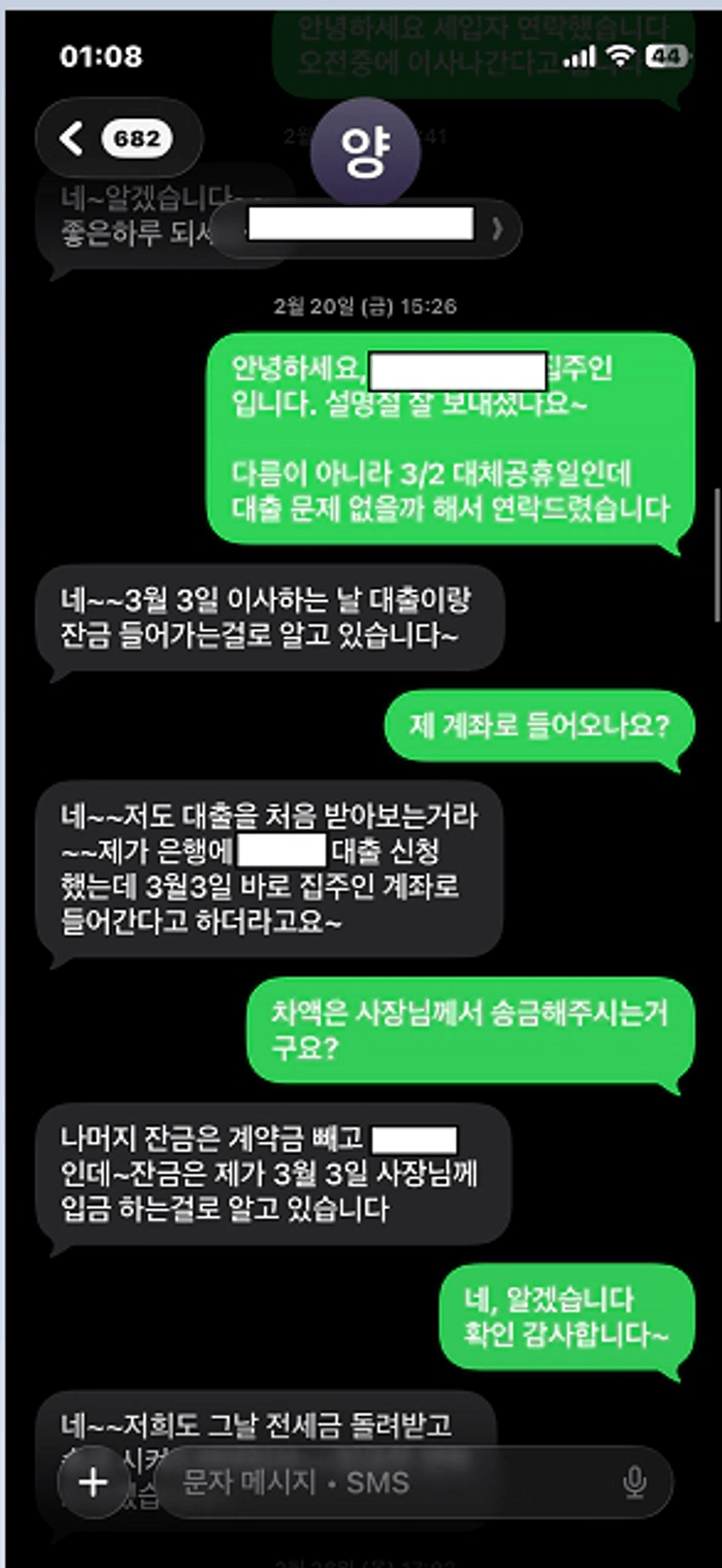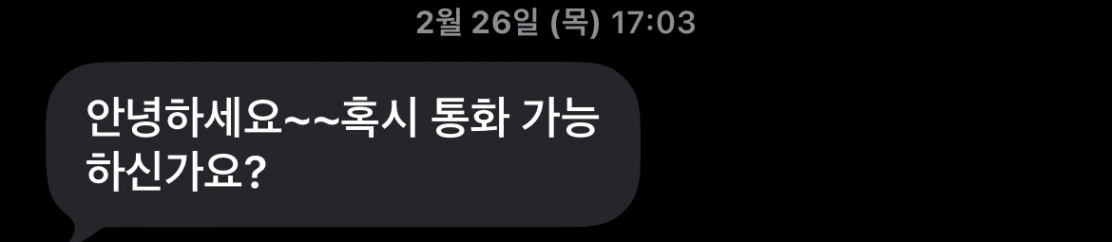 2월26일 신규로 들어오실 세입자로부터 문자 한통을 받게됩니다